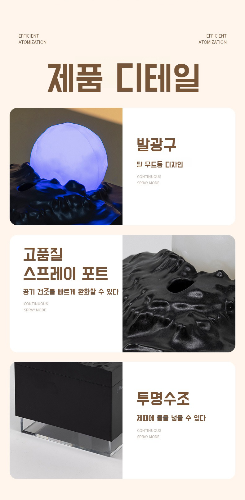 대용량 휴대용 가정용 가습기 미니 운석 무음 달 안개량 가습기